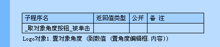 语法: 无返回值 Logo对象.置对象角度 (度数)