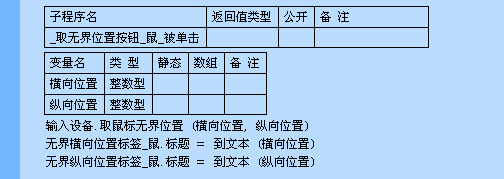 通过“取鼠标无界位置”命令取得鼠标当前无界位置坐标。