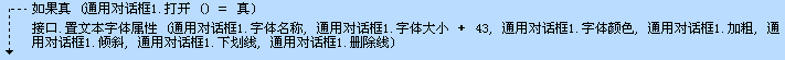 语法: 逻辑型 图形操作接口.置文本字体属性 ([字体名称], [字体大小], [文本颜色], [加粗], [倾斜], [下划线], [删除线])