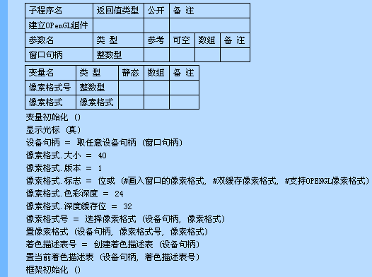 语法: 逻辑型 置像素格式 (设备句柄, 像素格式号, 像素格式)
