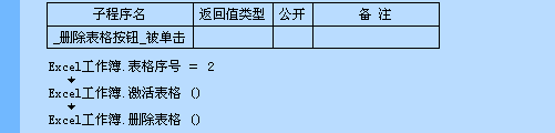 语法: 无返回值 Excel工作簿.删除表格 ()