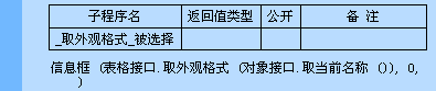 语法: 整数型 表格接口.取外观格式 (表格名称)