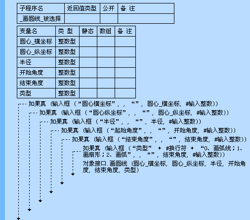(圆心横坐标,圆心纵坐标,半径,起始角度,结束角度,类型)