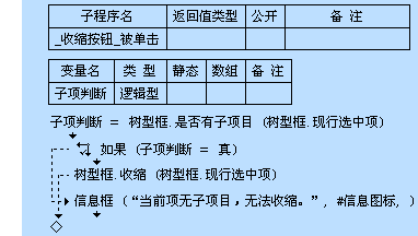 条件语句判断当前选中项目是否有子项目。如果有就执行收缩方法,隐藏被选中项目的子项,否则用信息框提示。