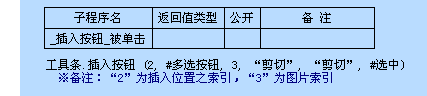 语法:  整数型  工具条.插入按钮 ([插入位置],[类型],[图片索引],[标题],[动态提示文本],[按钮状态])