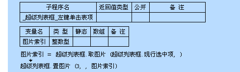 语法: 整数型 超级列表框.取图片 (表项索引,[列索引])