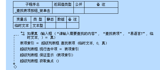 查找表项 方法 所属对象:超级列表框 操作系统支持:Windows