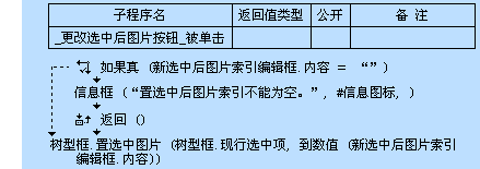 通过条件语句判断,提供图片索引的编辑框的内容是否为空。内容为空就将程序返回,不执行下一行代码,否则修改当前选中项目的选中后图片。由于图片索引为数值型,必需将文本内容转换到数值。