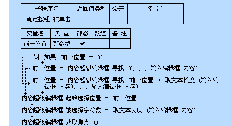语法: 整数型 超级编辑框.寻找 ([起始寻找位置],[是否区分大小写],[是否匹配单词],欲寻找文本)