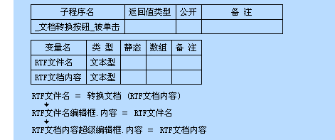 显示对话框打开指定文档并将其转换到RTF格式(RTF是国际标准丰富文本格式),成功返回被转换文档的文件名且将转换结果存放到指定容器,失败或被用户中止返回空文本。本命令可以自动调用当前Windows系统中已登记的所有文档转换器以读入各种其它类型文档,譬如Word文档、Excel表格等等。