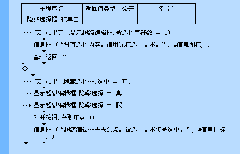 在隐藏选择为假的时候,如果超级编辑框中有被选择内容,在超级编辑框失去焦点后,还可以看到被选择,如果隐藏选择为真,在超级编辑框失去焦点之后,将不能看到被选中内容,当超级编辑框再次获得较点之后,被选择内容才会继续被选择,注意:只是看上去不同,不管是否选中,在失去焦点之后,被选择内容还是被选中的。