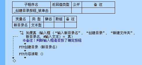通过“FTP创建目录”命令在已连接的FTP服务器的当前目录中创建一个目录名和“新目录名”变量中保存的文本相同的新目录。