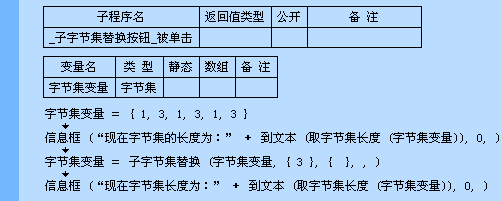 通过“子字节集替换”命令将指定字节集中的字节集替换。