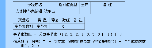 通过“分割字节集”命令将指定字节集按表示字节集分割。
