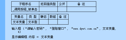 语法: 逻辑型 输入框 ([提示信息],[窗口标题],[初始文本],存放输入内容的变量,[输入方式])