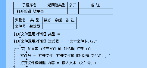 使用通用对话框打开一个文本文件,如果点击了通用对话框的“打开”按钮,则通用对话框返回真,编辑框将显示出打开的文本文件内容。