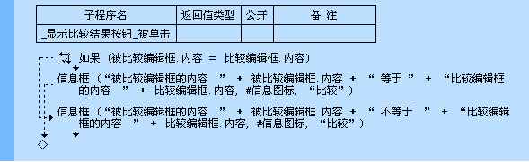此例程为两个文本进行比较,条件成立,第一个信息框显示。