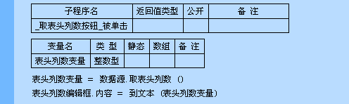 将数据源的表头列数取出,存放在“表头列数变量”中,并用信息框显示表头列数。