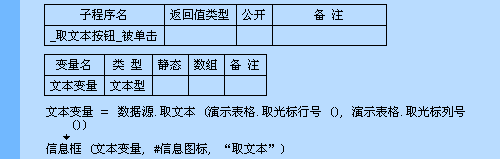 取得表格光标所在行列的文本,并用信息框显示,行列号从1开始。
