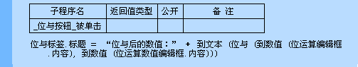 将位运算编辑框的内容和位运算数值编辑框的内容转换到整数型,把转换后的数据位与,再把返回的整数型数据转换到文本型,放入位与标签的标题中。