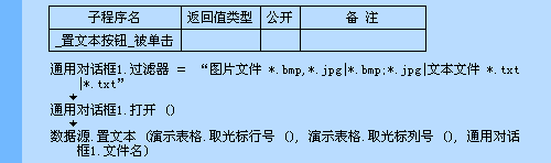 语法: 无返回值 数据源.置文本 (行号,列号,文本或图片文件名)