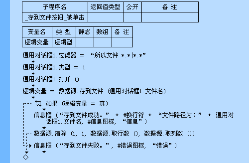 语法: 逻辑型 数据源.存到文件 (数据源数据文件名)