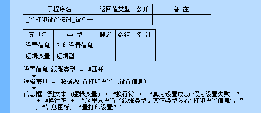 打印设置信息变量为打印设置信息,保存的是欲设置的打印外观,用数据源的“置打印设置()”方法设置当前的打印设置为“设置信息”变量中的内容。