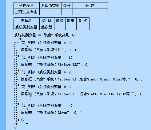 取得代表系统版本类别的数值,通过判断弹出不同信息框,提示取出的系统版本类别。