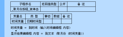 首先将编辑框中输入的时间转换成日期时间型的数据,然后用“取月份”命令将月份取出,并显示在“显示结果编辑框”中。时间操作类命令很多都是对日期时间型数据进行操作,所以可以将一个通用型数据用“到时间”命令转换成日期时间型数据,然后再使用其它命令进行操作。