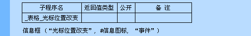 光标位置改变 事件 所属对象:表格 操作系统支持:Windows