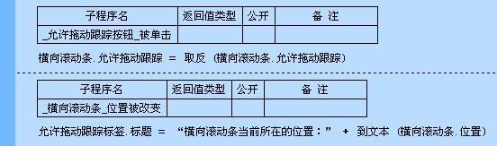 横向滚动条的允许拖动跟踪为假时,当拖动滚动条的鼠标放开以后才触发“位置被改变”事件。