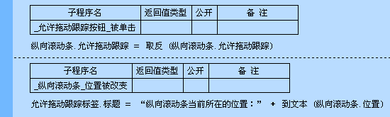 纵向滚动条的允许拖动跟踪为假时,当拖动滚动条的鼠标放开以后才触发“位置被改变”事件。
