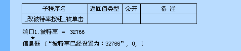 按下“改波特率”按钮,就将端口组件的波特率属性设置为32766。一般情况下,两个用于通讯的机器设备要求波特率要一致。这就好比是音乐节拍,如果两者节拍不一致,那么就不会起到共鸣的作用。波特率也是这样。