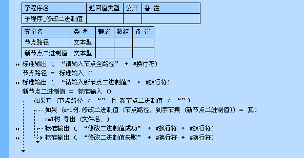 该方法会修改指定节点的值为二进制的值。注意该方法指定的二进制数据不应太大,否则该支持库将无法解析。该方法执行成功返回真,执行失败返回假。