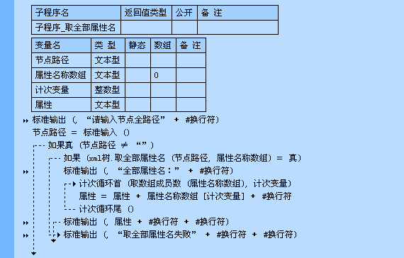 取得参数节点的所有属性的名称。该方法执行成功返回真,执行失败返回假。