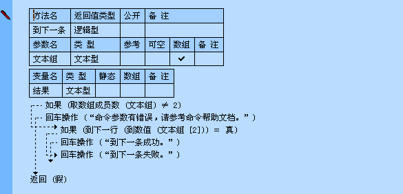 将当前记录指针移动到下一行,如果该行为最后一行,使用本命令将失败。