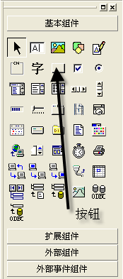 在窗体上拉出一个按钮组件。形成“按钮1”;