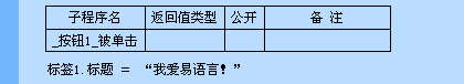 例如种一棵苹果树,可以在一只苹果上蒙上空心字,通过光合作用后,就可以发现这只苹果上被刻上了字。而编辑这个程序也是这样,“易语言”相当于种树的土壤,而苹果树的支干相当于“易语言”中的窗口,用来承载苹果或按钮。而文字区相当于空心字,单击按钮的动作相当于光合作用,最后就会在窗口上显示一排文字。