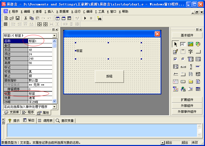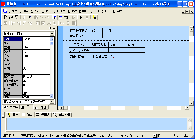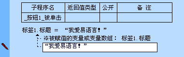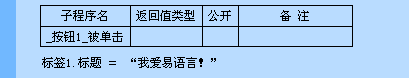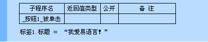 执行后就是将“标签1”窗口单元的标题改变为“我爱易语言!”。所有在程序中使用的文本数据两边都必须用双引号括起来,譬如“我爱易语言!”。