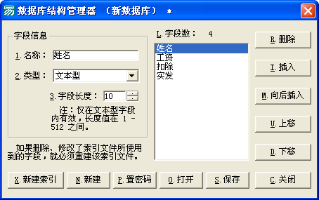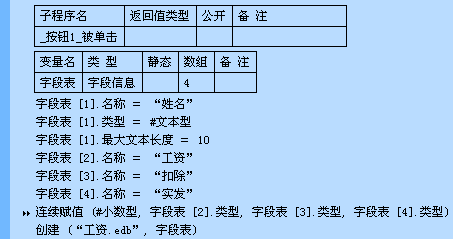 欲在程序中创建数据库请使用“创建”命令,如欲创建上面的示例工资数据库