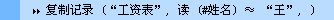 输入方法:fzjl("工资表",d(#xm)?="王")