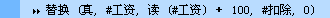 假如您想把数据库中所有员工的工资都加上 100 元,就需要使用数据库表达式。完成此工作的相关数据库命令“替换”的调用格式的后半部分如下: