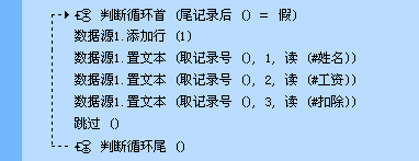 其中:读 (#姓名) ≈ “王” 即是用作定义记录范围的子语句,这与 XBASE 的格式基本一样,只不过在 XBASE 中可以直接使用字段名称,而易语言由于不是解释型语言,所以使用