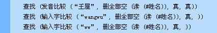 第二条语句完成类似的工作,不过使用的是全拼拼音编码;第三条语句使用的是首拼拼音编码。