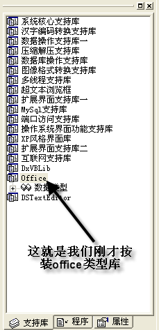 这时我们再运行“易语言”,在支持库中,就会看到我们刚才注册的类型库。