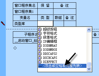 首先创建一个变量,他的类型就是这些项目的名称,我们可能在类型选择中找不到这些,我们可以点击这项来展开所有的类型,就会发现我们需要的。