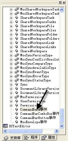 箭头所示的就是office类型库包括的事件,这些事件如何使用呢