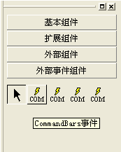 我们会发现在控件箱中多出了一些控件,这些控件就是刚才我们注册的类型库的触发事件,我们需要使用它的时候,就可其他组件一样把它拖放到窗体上就可以了