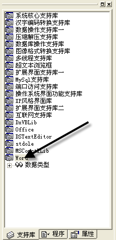 选择“工具”→“类型库及OCX组件—〉支持库”注册word类型库。