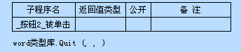 现在我们运行代码,先单击按钮1创建,再单击按钮2关闭word,你会发现并没有触发“_Application事件1_Quit”事件,没有弹出信息框,因为我们虽然调用了“_Application事件1_Quit”事件,但是并没有将“_Application事件1_Quit”事件和“Application”挂钩,我们必须在“__启动窗口_创建完毕”将这个事件和“Application”挂钩,不然是无法触发这个事件的。